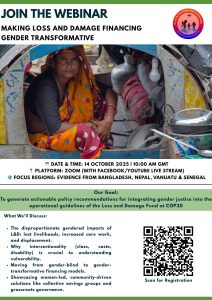 🌍 Join the STRENGTH Insights Webinar Series – Session 1 Making Loss and Damage Financing Gender Transformative Date & Time: 14 October 2025 | 10:00 AM GMT 📍 Platform: Zoom 🌐 Focus Regions: Evidence from Bangladesh, Nepal, Vanuatu & Senegal The first webinar of the STRENGTH Insights Series will explore how gender-transformative approaches can make …