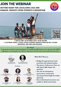 🌍 Join the STRENGTH Insights Webinar Series – Session 3 Getting Ready for Localizing Loss and Damage: Insights from STRENGTH Consortium 📅 Date & Time: 28 October 2025 | 10:00 AM GMT 📍 Platform: Zoom 🌐 Focus: Cross-country insights from deltaic, island, mountain, and semi-arid regions The third and final session of the STRENGTH Insights Series brings together voices from across regions to discuss how Loss and Damage (L&D) finance can be effectively localized. This webinar will share lessons from the STRENGTH consortium to ensure that the emerging Loss and Damage Fund is responsive…