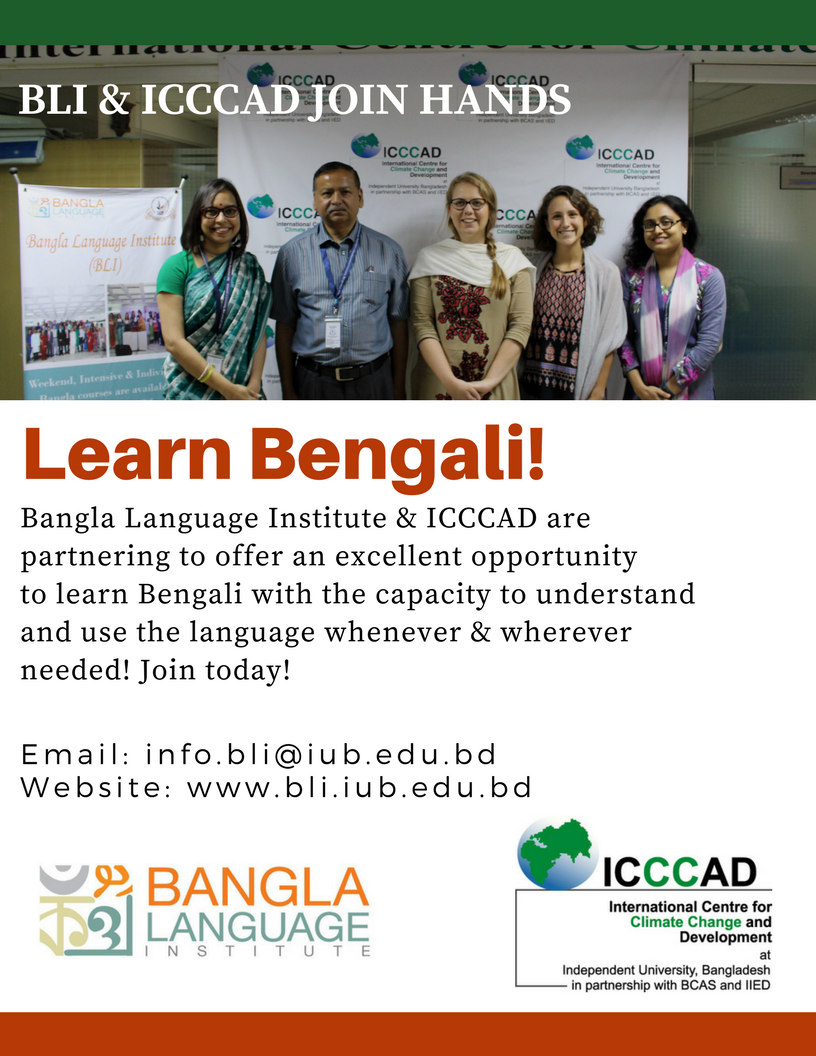 Bangla Language Institute & ICCCAD are partnering to offer an Exellent opportunity to learn Bengali with the capacity to understand and use the language whenever & wherever needed! Join today!